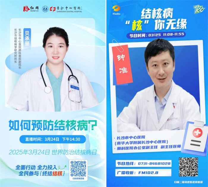 3月25日,肺科立博体育 办公室副主任钟准在湖南广播电台进行了《结核病“核”你无缘》的线上直播。同日,结核病诊疗中心急诊病房副主任医师陈晓丽做客晨视频“大咖面对面”节目。两位专家分别向市民解答了结核病防治的热点问题。