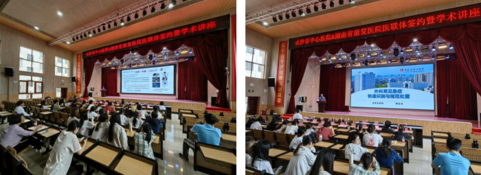 为加强医联体建设工作,充分发挥立博体育 医疗资源优势,推进医疗与康复融合发展,4月16日上午,在党委委员、副院长黄孟军带领下,立博体育 与湖南省康复立博体育 举行医联体合作协议签约授牌仪式,此后将围绕加强学科及科研领域的合作、共同推进医护康治研一体化等方面进行广泛深入交流。当天,医疗联合工作办公室还组织肿瘤科、重症医学科、外周血管介入科、脊柱外科、核医学科、神经外科、神经内科、急诊医学科等科室与湖南省康复立博体育 开展学术交流活动。