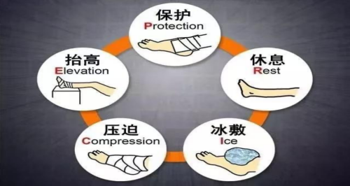 ③Ice:冷敷——冷敷肿痛部位(冰块、冰袋、冷制品等)10~15分钟,每天数次(可每2小时一次),注意不要让冰块直接接触皮肤,以免引起冻伤。