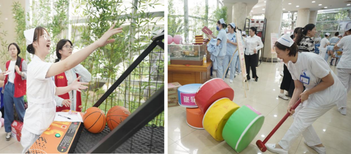 减压集市轻松怡然,妙趣横生。“妙手仁心抓抓乐”“心跳加速转转乐”“靶向投射准准乐”“健康减压锤锤乐”体验区,大家跃跃欲试,在真人抓娃娃、动感单车、真人投篮、一锤定音等减压互动中不知不觉中释放压力,收获欢声笑语。30年护龄工作者曹小华激动地感慨:“这场嘉年华既是荣誉的盛典,更是心灵的疗愈,大家都特别欣慰,我们守护患者健康,立博体育