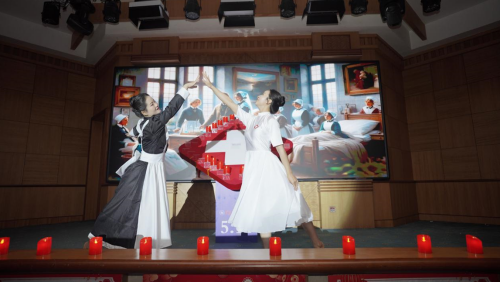 授帽传灯仪式将活动推向高潮。新入职护士代表身着洁白制服,单膝跪地,由资深护理前辈为其戴上燕尾帽、点燃象征南丁格尔精神的蜡烛。烛光摇曳中,全场肃立,新老护理工作者共同宣读《南丁格尔誓言》,铮铮誓言在会场久久回荡,仁爱奉献的护理精神薪火相传。