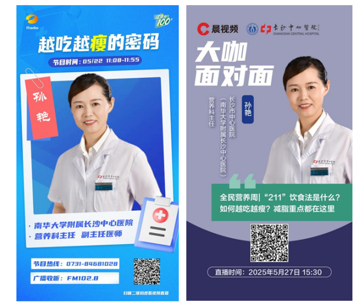 临床营养科主任孙艳通过晨视频《大咖面对面》开展主题为“如何越吃越瘦?减脂重点都在这里”的直播,内容紧扣体重管理常见误区与热点需求,直播中实时解答观众提问,累计观看人次破万。