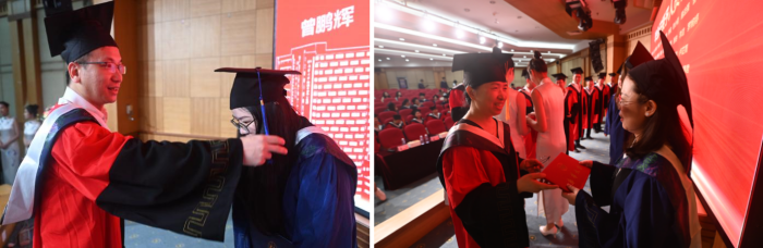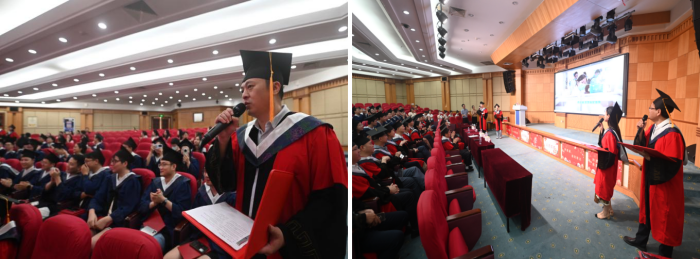 提供的广阔平台和丰富资源,感恩导师们如春风化雨般的悉心教导与无私关怀,并对同窗三年的深厚情谊表达了深深的眷恋。现场还播放了毕业生代表们提前录制的感恩视频,一句句发自肺腑的话语,传递着对导师们无尽的感激与崇高的敬意。