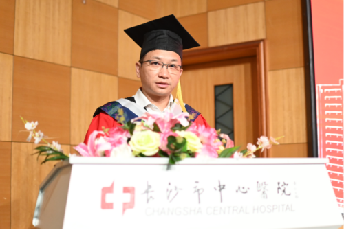 骨科专业李良军教授作为研究生导师代表发言,他饱含深情地回顾了与同学们共同成长的点点滴滴,勉励大家不忘初心、坚守医者誓言,在未来的道路上披荆斩棘,砥砺前行。浓浓的师生情谊在会场内静静流淌,令人动容。