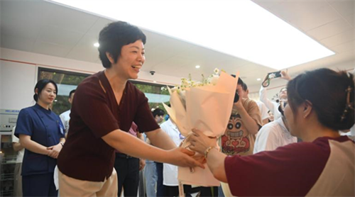 “大家辛苦了,看到你们带头献血,就觉得特别有底气,有你们在,患者就有希望。”苏敏芳主任走进献血小屋,将手里的鲜花一一献给刚献完血的血液科医生沈瑞、病理科医生赵艳、皮肤科护士王娇手中。