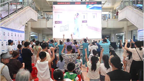 紧接着,中西医结合科护理团队率先带来传统导引术五禽戏表演。学员们跟随专业指导,模仿虎之威猛、鹿之安舒、熊之沉稳、猿之灵巧、鸟之轻捷,亲身体验中医“形神共养”的运动精髓。随后播放的中西医结合科宣传片《医道风华·融汇中西》,向学员们生动展现了现代中医人"辨证施治,中西并重"的诊疗智慧。