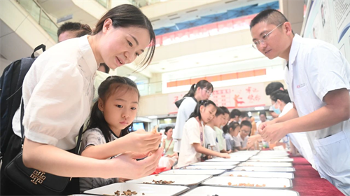 活动现场特设中医义诊区,为完成"小中医"实践的学员家庭开启"一对一"亲子健康课堂。中西医结合科的专家团队为学员及家长提供免费的脉诊服务与体质辨识,并依据个体情况制定个性化的三伏养生方案,同时给予常见病的防治指导。现场的许多家长频频点赞:“孩子在这里学习中医知识,我们也能收获实用的养生建议,真是全家受益的体验!”