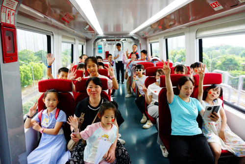 随后,亲子家庭登上磁浮列车,开启“贴地飞行”体验。当列车以140公里时速平稳行驶时,孩子们趴在车窗观察轨道细节,家长则用手机记录下孩子兴奋的笑脸。
