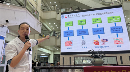第二堂讲座中,肾病、风湿免疫科副主任医师邓洪用“盐罐子”做比喻:当血液里的尿酸像盐粒一样堆积在关节,就会形成“小石头”引发剧痛。因此,痛风有“疼痛之冠”之称。更关键的是,长期高尿酸会像蛀虫一样啃噬肾脏,很多患者直到尿毒症才后悔莫及。