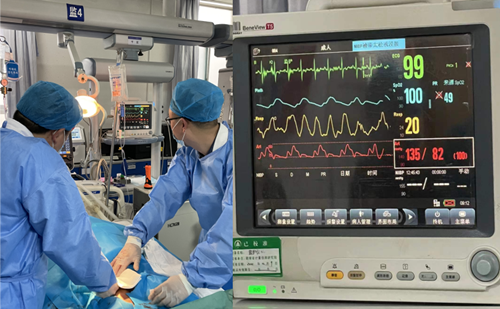 5月27日9:30分,一切准备就绪,经过180小时的正常运转,ECMO撤离成功,患者血流动力学平稳,仅靠小剂量血管活性药物维持,氧饱和度正常,评估心脏彩超心肌活动正常,观察1小时生命体征平稳,撤机成功,患者贾先生被安全转运回当地。