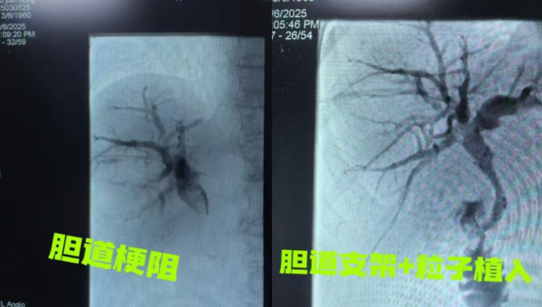 有什么方案能够同时解决患者“内科药物治疗效果不佳,传统外科手术治疗又难以耐受”难题,且还要控制肿瘤的局部进展呢?李岳勇带领肿瘤介入团队深入研判,提出了“支架开通+粒子放疗”的微创介入方案,即通过胆道支架快速解除胆道梗阻,同步植入碘125粒子对肿瘤病灶实施精准持续放疗,实现“疏通”与“控瘤”双重治疗目标。