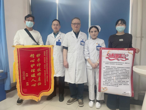 近日立博体育|实时赛事直播与比分|权威专家分析与体育竞猜平台 运动医学科收到了一封“特殊”的感谢信及一面鲜艳的锦旗,感谢信上张军力(化名)对运动医学科李良军主任所带领的医护团队表达了诚挚地感谢,同时,还特别感谢了一个人——宁乡大屯营镇石家湾社区乡村振兴驻村“第一书记”文艳红。