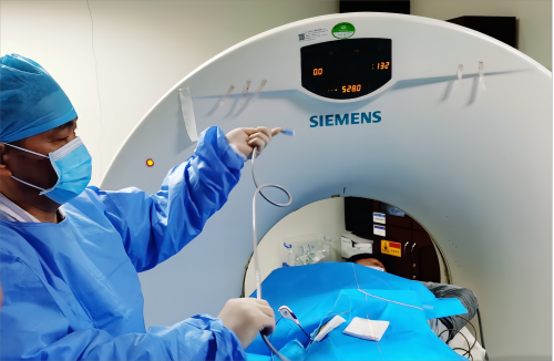 射频消融术是通过利用电极针提供交替电流,产生高频电磁场,肿瘤组织内的分子试图追随交替电流的轨迹而相互撞击摩控产热,肿瘤组织及其周围局部温度可达60-120℃,从而使肿瘤细胞发生凝固性坏死的目的。 该项技术主要适用于肝脏、肺和部分骨、软组织等实体瘤的治疗,能在一定程度上缩小肿瘤,控制病灶,从而使得肿瘤降期,改善病灶。对于直径较小(≤3cm)的肿瘤,甚至能达到完全消融。该项技术属于局部治疗,具有创口小,损伤小,痛苦少,安全系数高,术后恢复快,费用低等优势。