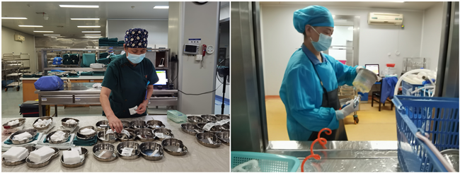 目前科室配有1台全自动多腔清洗消毒机、1台单腔喷淋清洗消毒机,1台全自动真空超声内镜清洗消毒机,具有自动预洗、酶洗、喷淋、消毒、干燥、上油等功能,减轻了工作人员劳动强度;1组超声清洗预处理机,1台煮沸消毒机,1组内镜清洗工作站;3台脉动真空压力灭菌器,灭菌时间、压力、温度均由设备精准设定控制,确保了物品灭菌质量; 1台环氧乙烷低温灭菌器,用于精密仪器及各类导管、导线设备的灭菌,满足了临床科室业务发展的需要。3台生物监测快速阅读器(高压灭菌生物检测2台、环氧乙烷灭菌生物检测1台)、保证了植入物手术器械的及时发放。